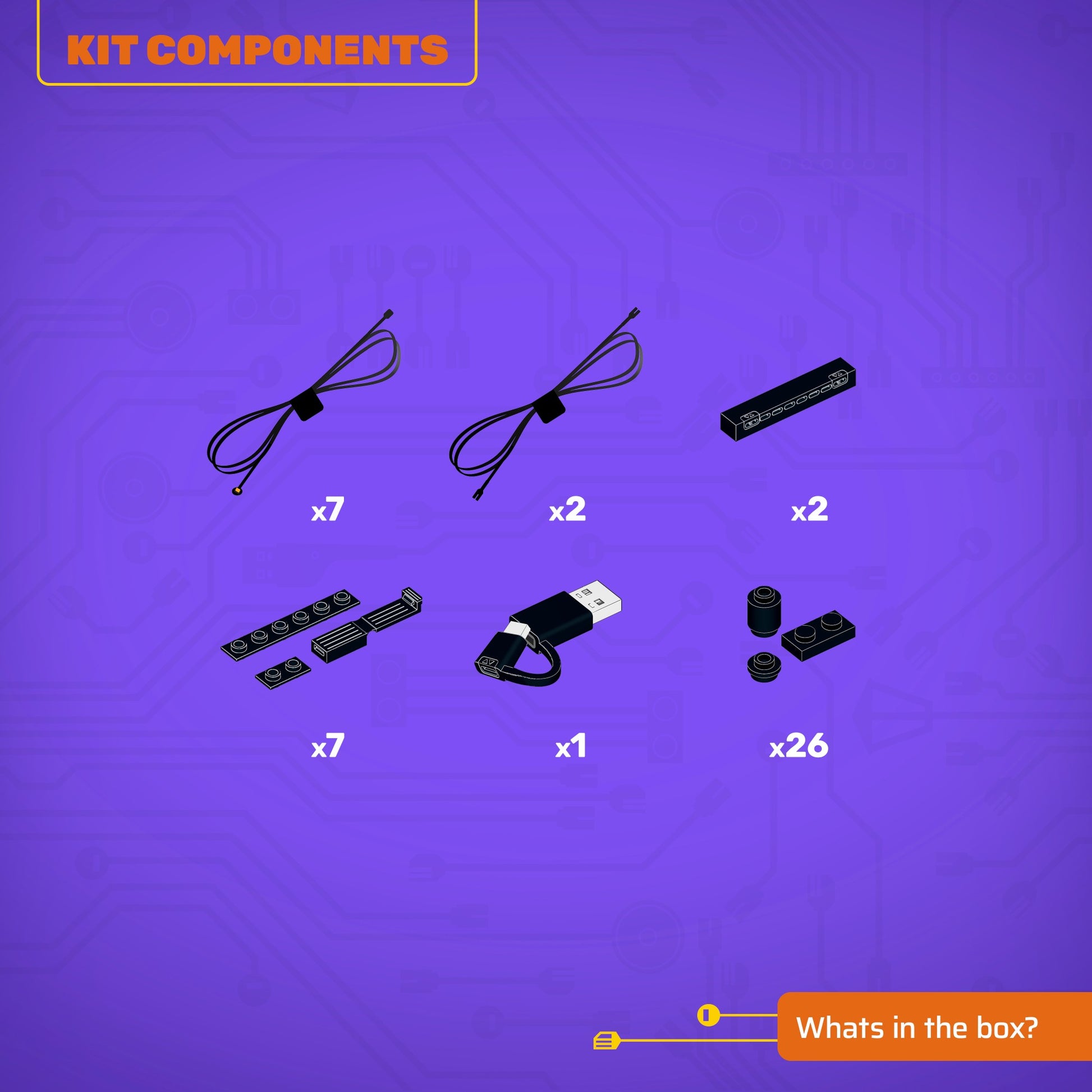 • Alle Gehäuse und Abdeckungen der Komponenten wurden so entworfen, dass sie nahtlos mit dem LEGO-Noppen-System verbunden werden können, mit LEGO-dimensionierten Teilen.