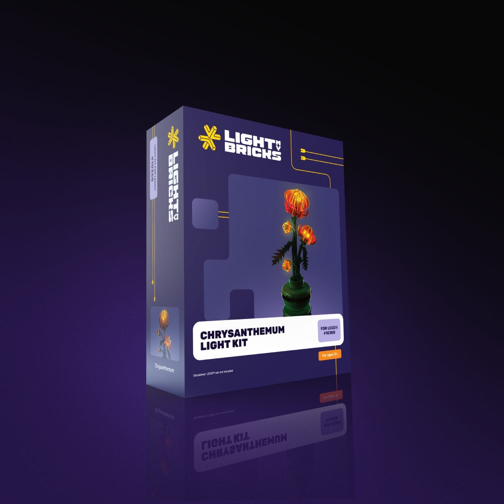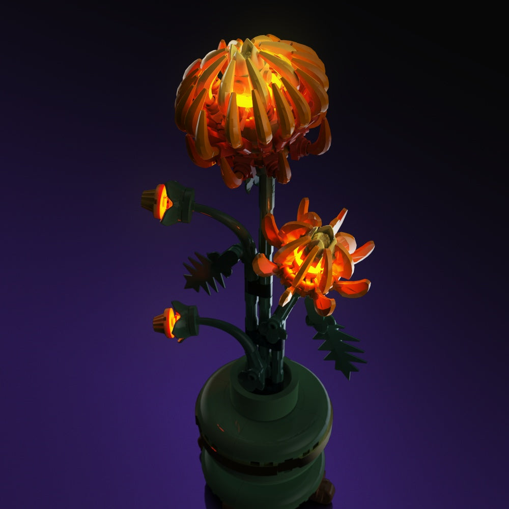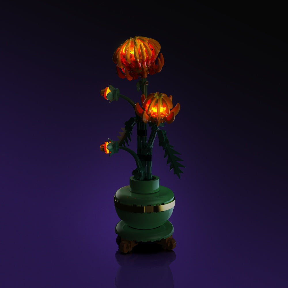 Die LEGO® Chrysantheme ist eine zeitlose Blumenanzeige, die darauf wartet, mit Light My Bricks™ beleuchtet zu werden.