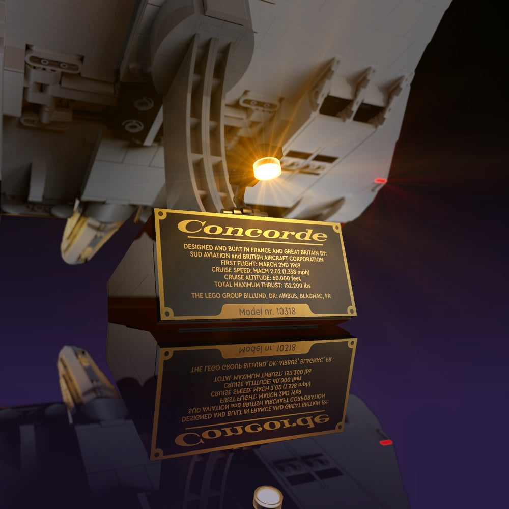 Die LEGO® Concorde ist ein Meisterwerk der Ingenieurskunst, und mit 11 Lichtern, die in diesem Set enthalten sind, wird Ihre Kreativität neue Höhen erreichen. Vom Fahrwerk über die Flügel bis zum hinteren Triebwerk wird jedes ikonische Merkmal der Concorde in atemberaubenden Details nachgebildet und beleuchtet.