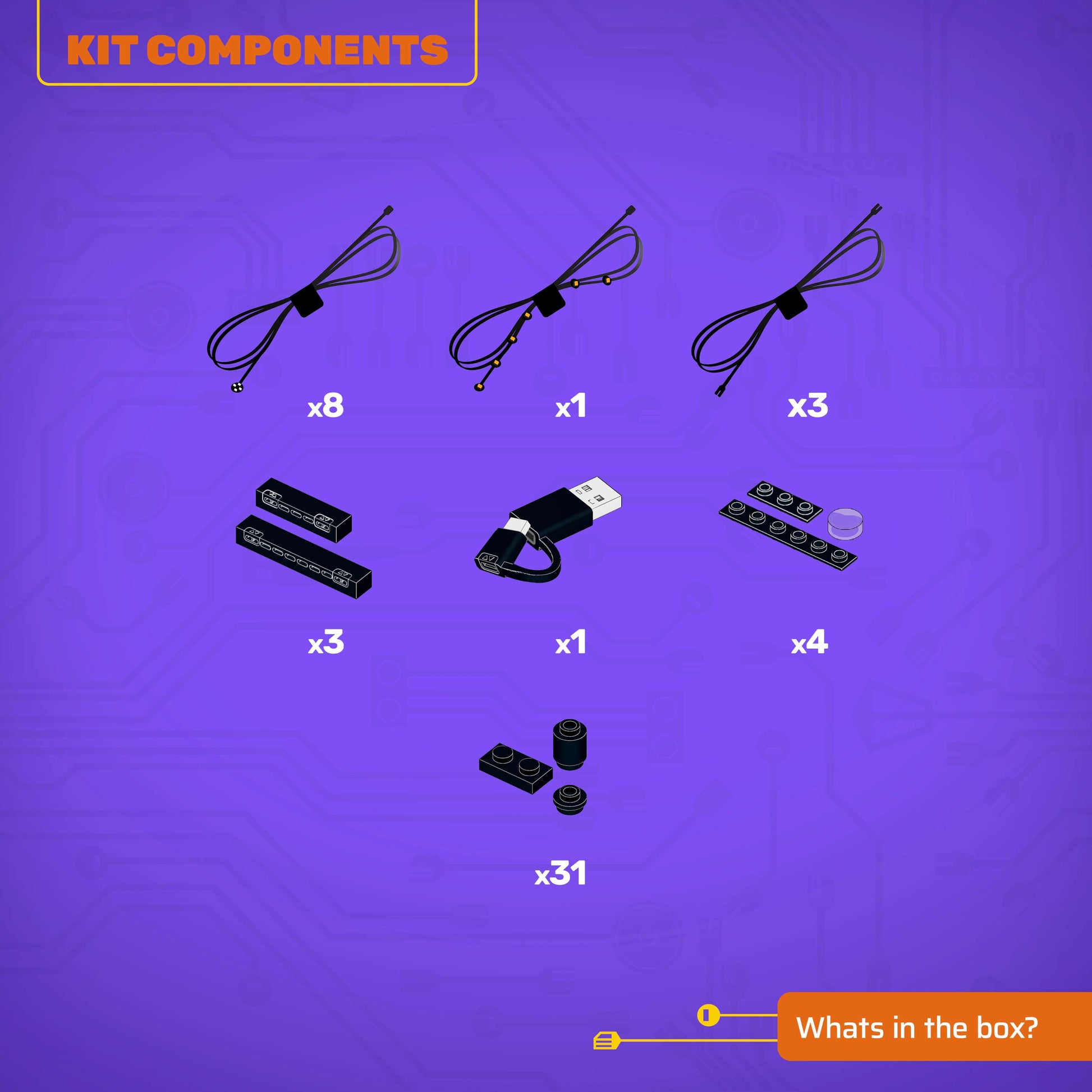 • All component casing and housing has been designed to connect seamlessly onto the LEGO stud system, with LEGO dimensional parts.