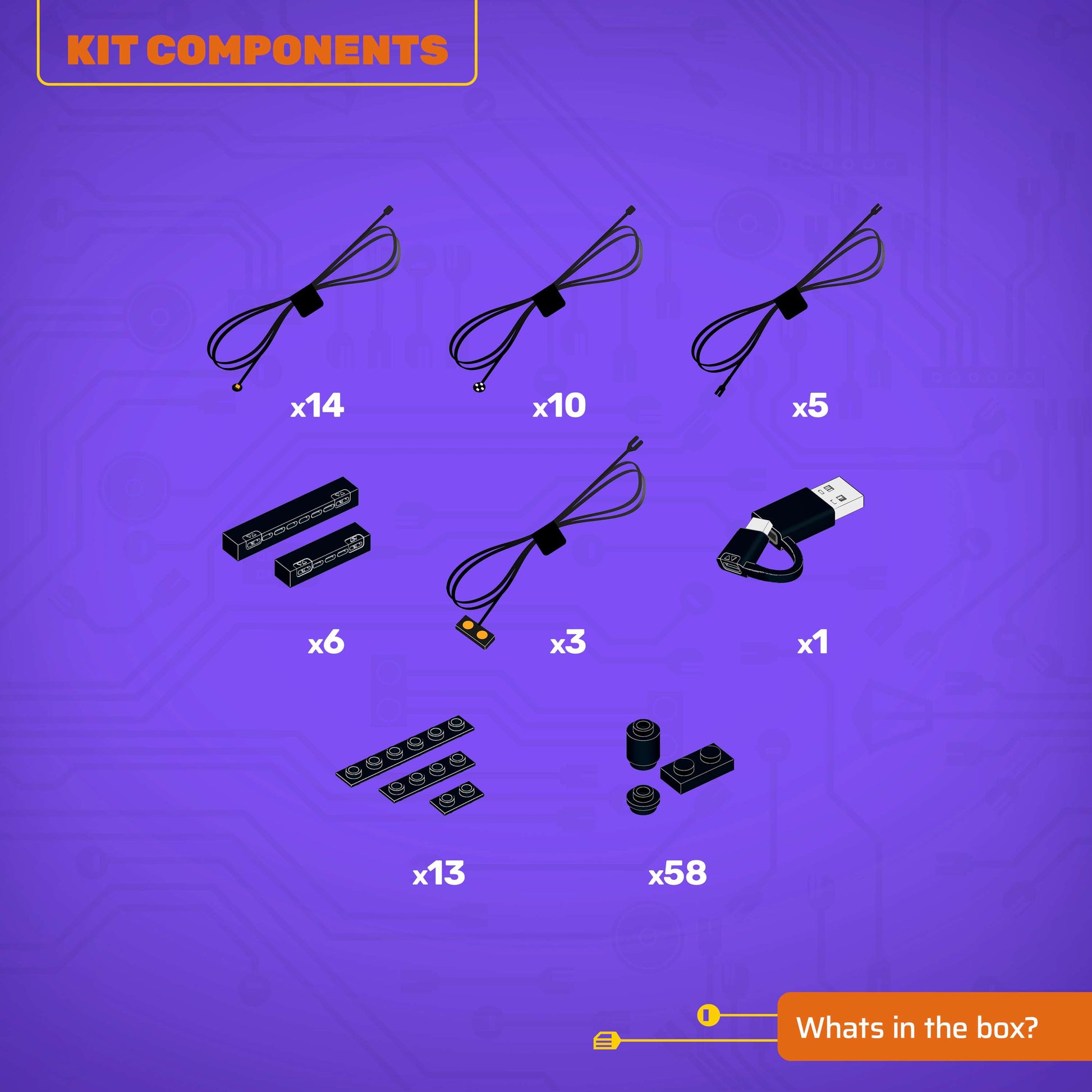 • All component casing and housing has been designed to connect seamlessly onto the LEGO stud system, with LEGO dimensional parts.