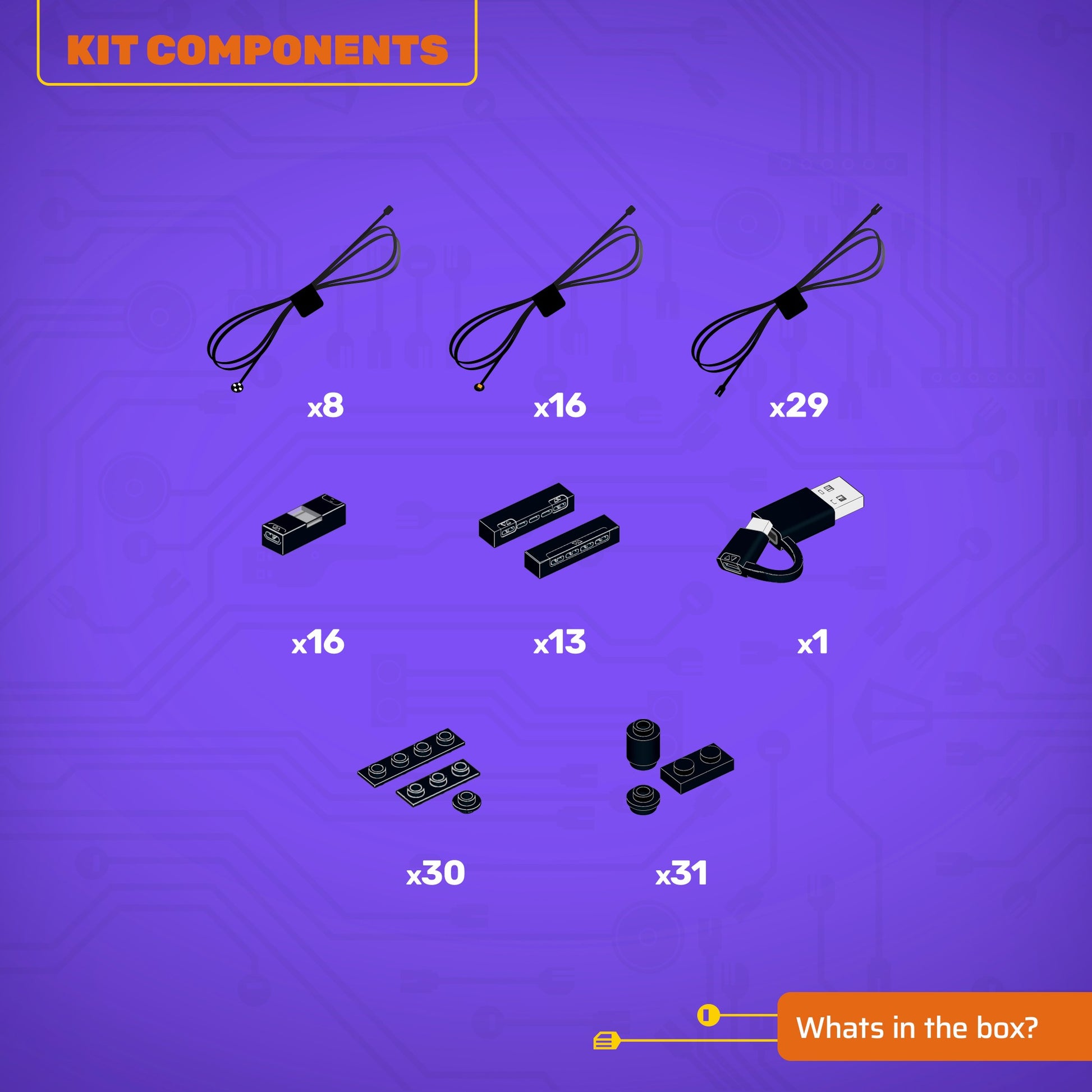 • All component casing and housing has been designed to connect seamlessly onto the LEGO stud system, with LEGO dimensional parts.
