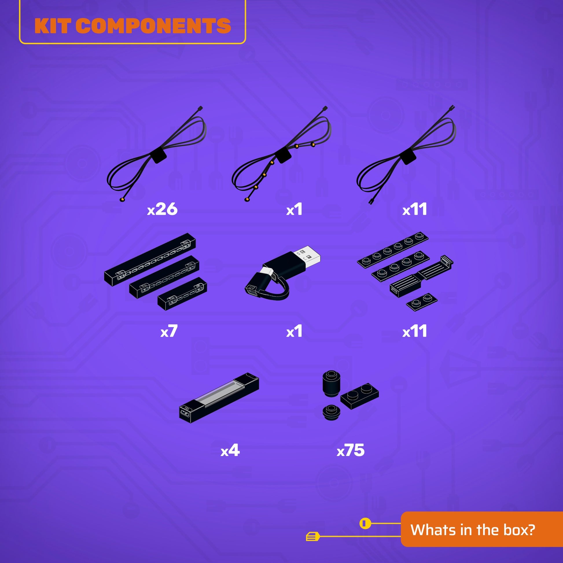 • All component casing and housing has been designed to connect seamlessly onto the LEGO stud system, with LEGO dimensional parts.