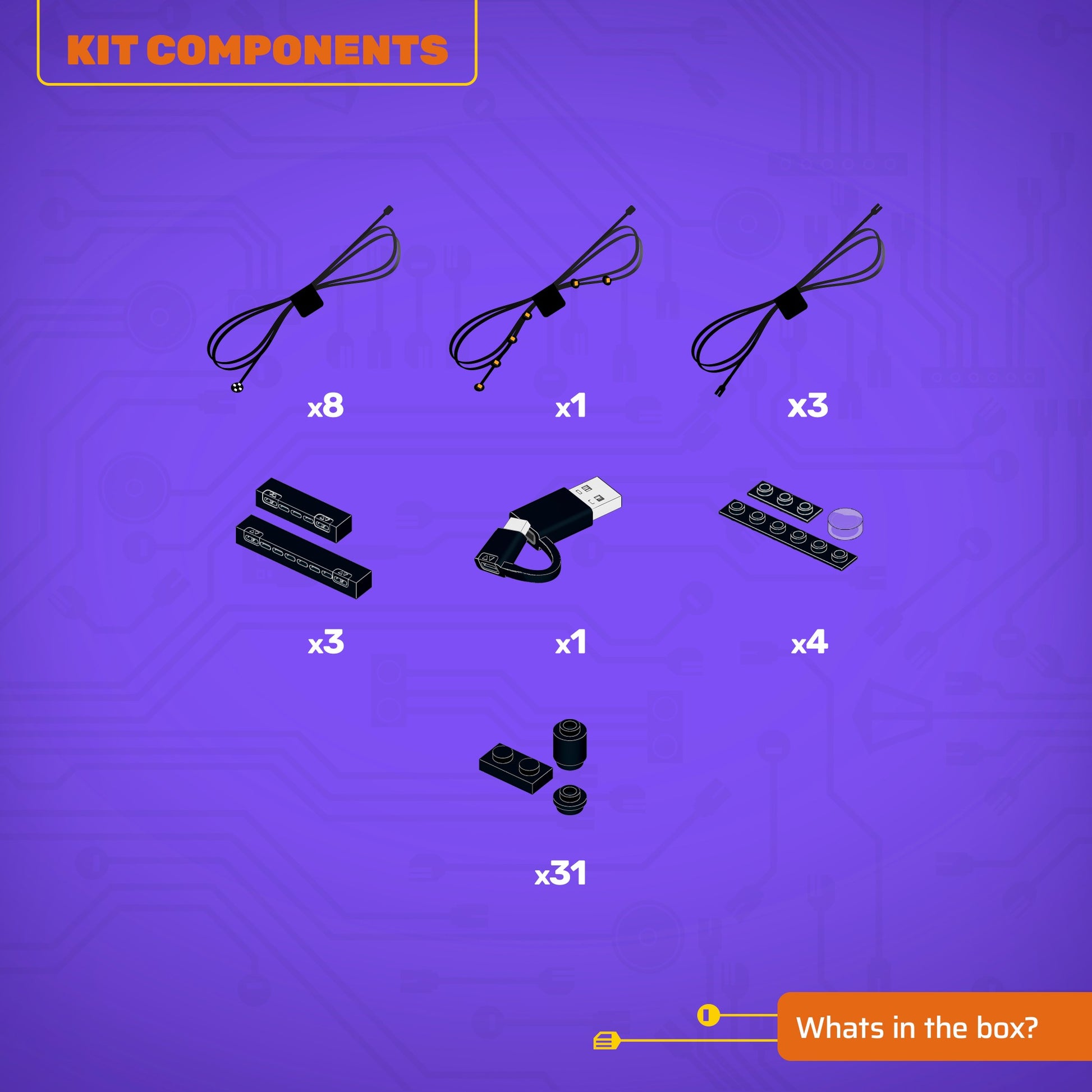 • All component casing and housing has been designed to connect seamlessly onto the LEGO stud system, with LEGO dimensional parts.