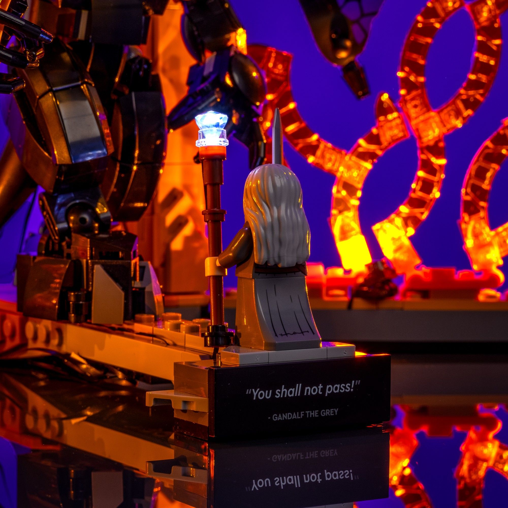 Transform your display into a scene of Tolkien legend. This cinematic lighting kit captures the scale, emotion, and power of the epic standoff.