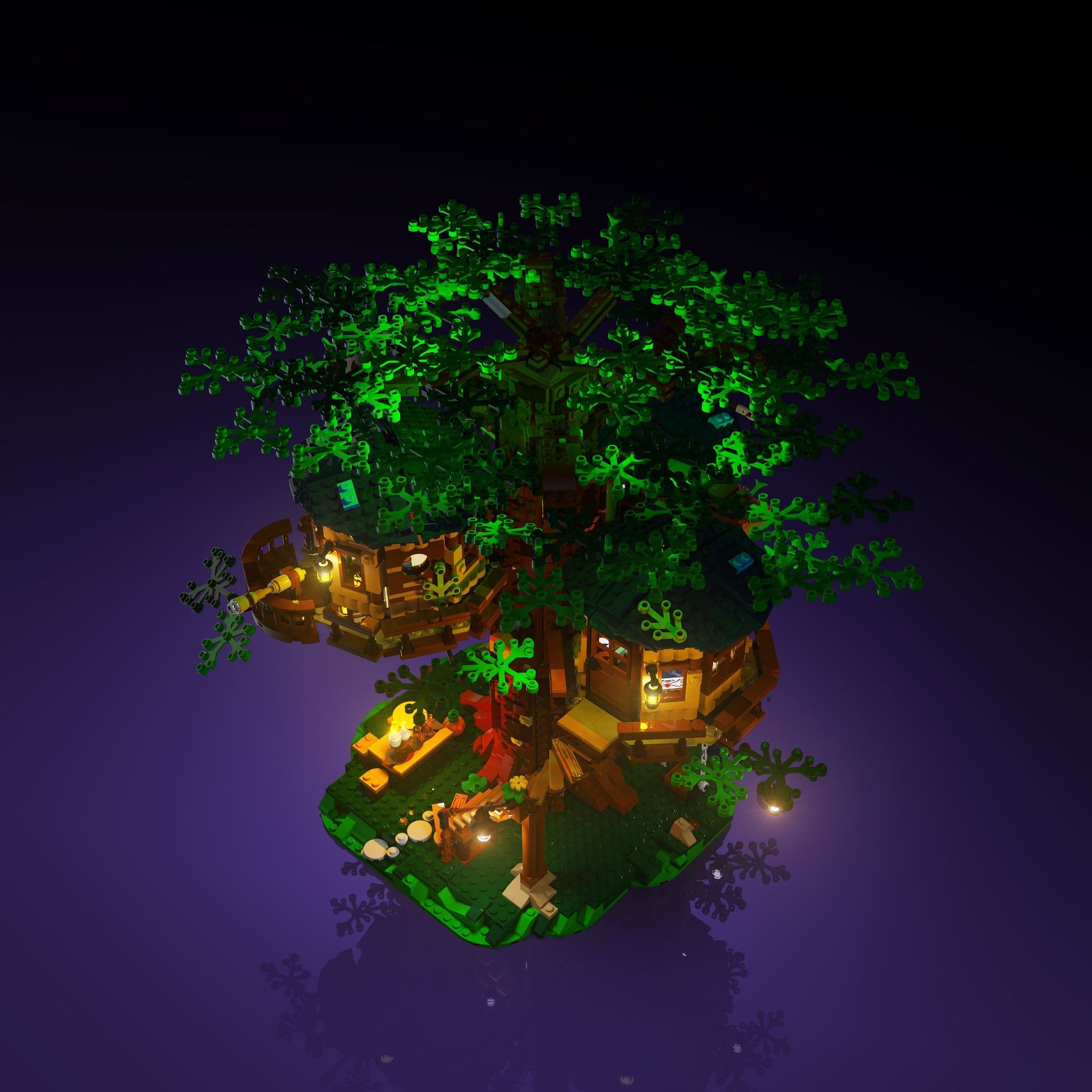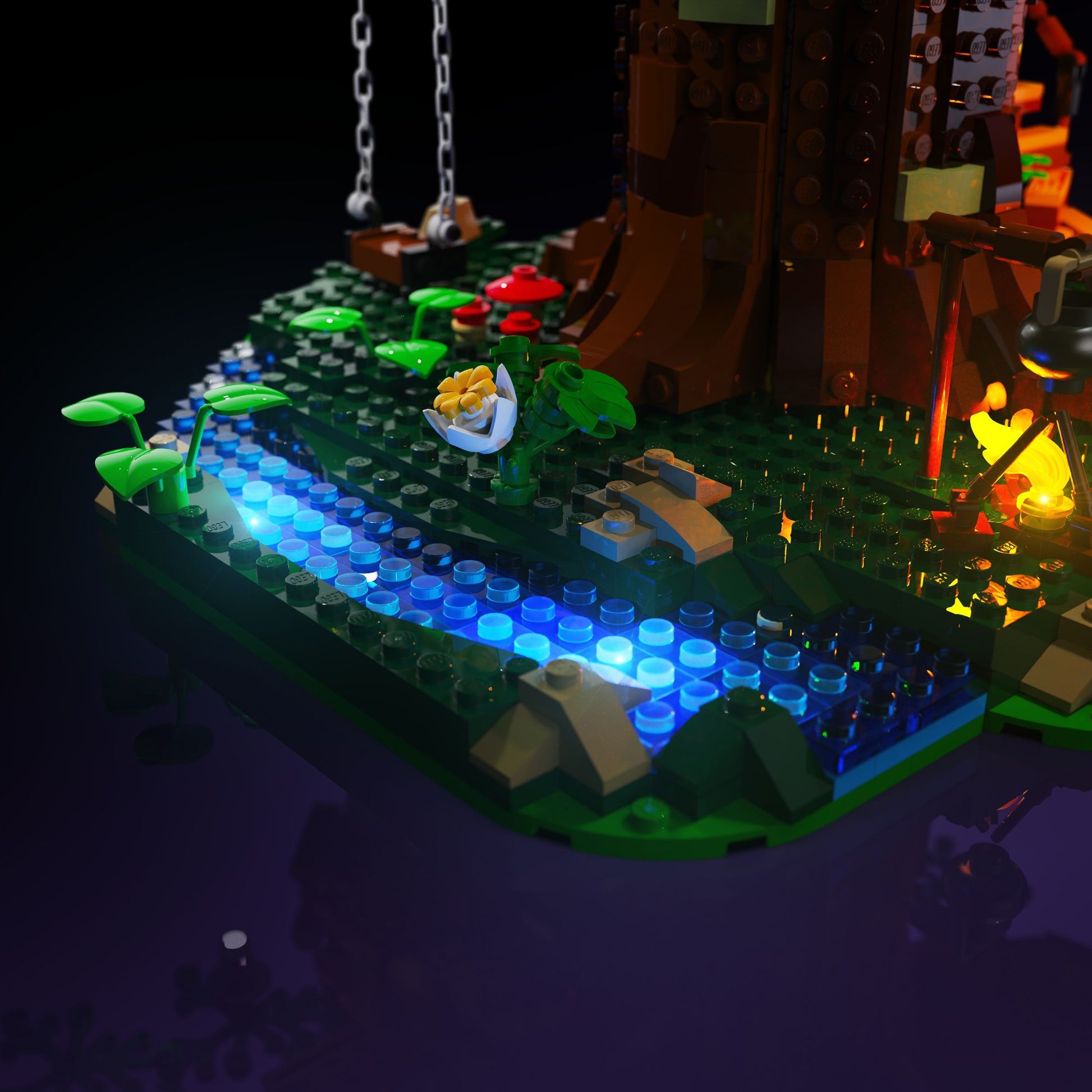 Designed to enhance and illuminate every detail of this intricate LEGO® Tree House set, you can create a tranquil outdoor river setting with warm blue lighting and cosy flickering lights in the campfire and candlelit table. Lanterns scattered across the treehouse cast a warm, enchanting glow through the branches and interior. Get creative with customisable leaf lighting to highlight either autumn yellows or bright spring greens. Blending artistry and functionality seamlessly, this Light My Bricks™ kit transforms your build into a stunning display and is perfect for collectors and enthusiasts alike.