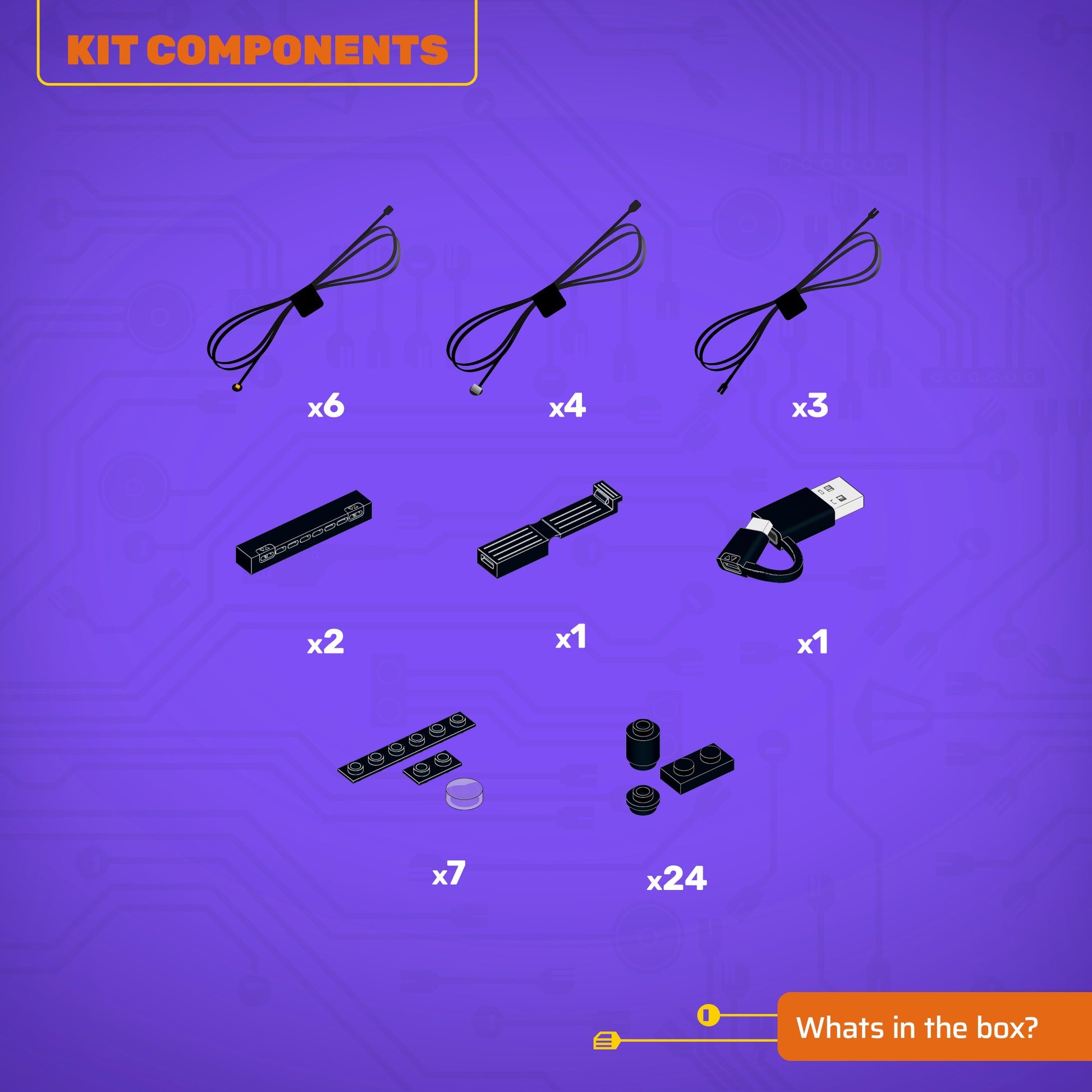 • All component casing and housing has been designed to connect seamlessly onto the LEGO stud system, with LEGO dimensional parts.
